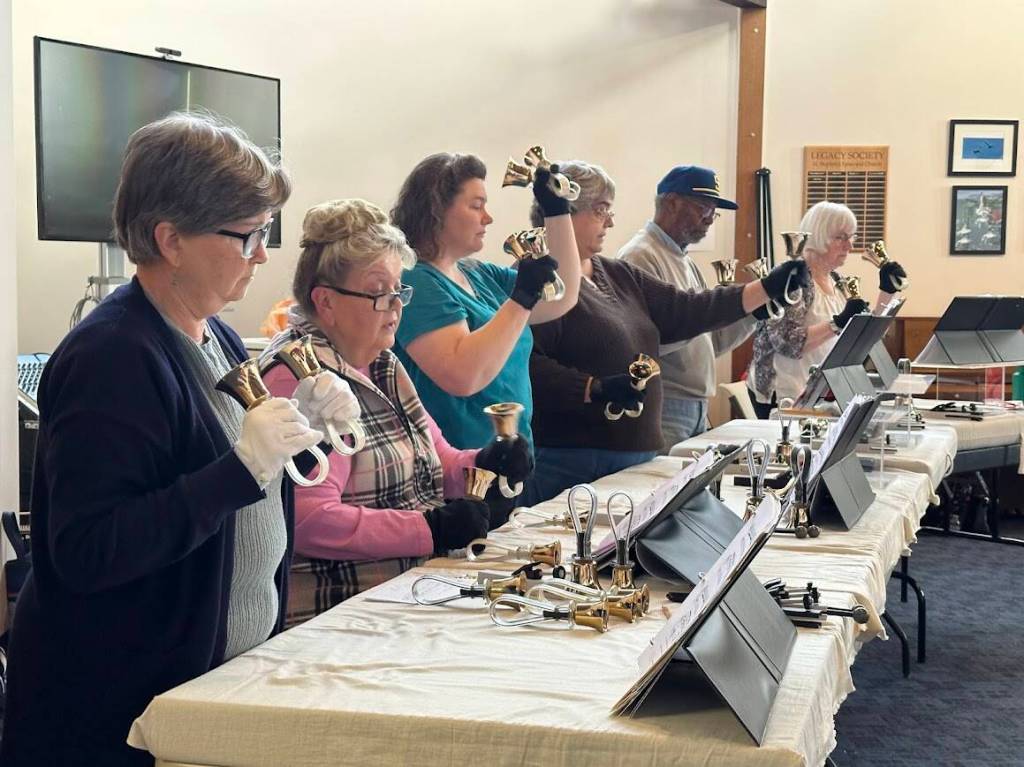 Waide’s ensemble of 11 English handbell ringers from North and Central Whidbey began rehearsing in late September for the program.