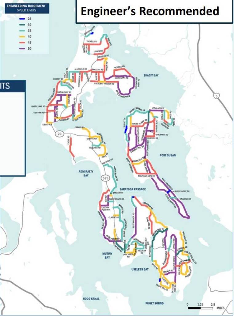 The engineers’ recommendations can be viewed at islandcountywa.gov/878/Speed-Limit-Study, but the information doesn’t include the proposed 45 mph maximum as some roads still show a 50 mph speed limit on the maps.