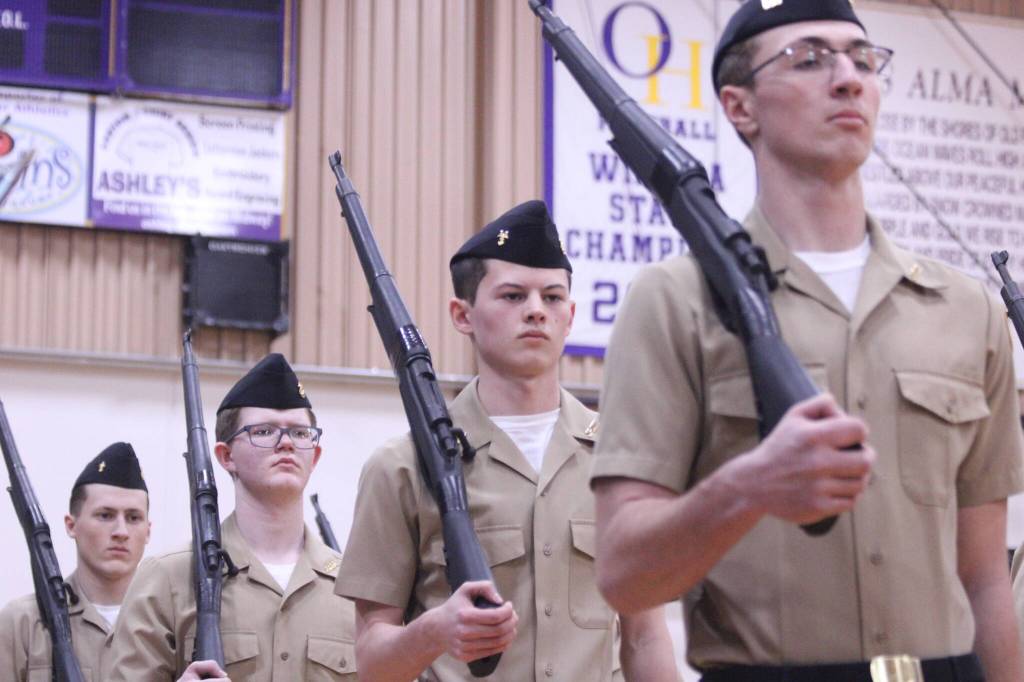 Armed drill team one took their rifle-flipping routine for a spin Saturday at Oak Harbor’s first home drill meet since the spring of 2023. Collectively, the Wildcats earned first place at Saturday’s meet, meaning drill, marksmanship, color guard, PT and academic teams qualify for a regional competition March 14 in Oregon.