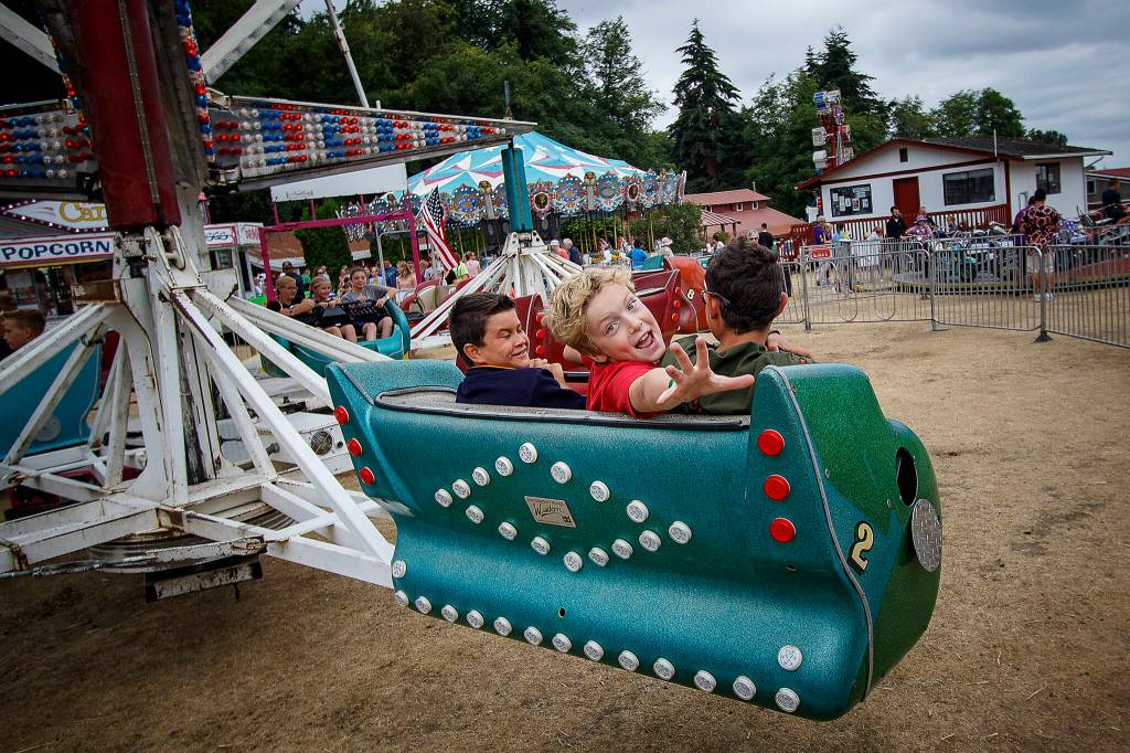 Kids on a carnival ride at the Island County Fair in July 2015.