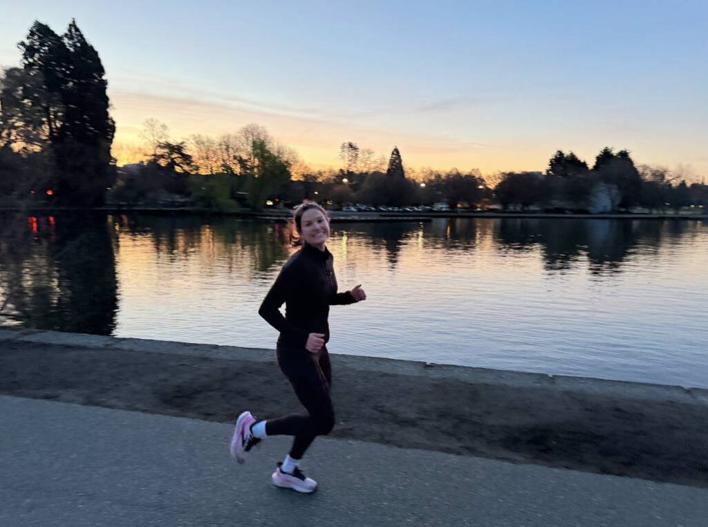 Following a second ankle surgery in August for her broken ankle, she was just getting back into short runs, three miles at a time. Once she started training for the Whidbey Island Marathon in early December, she built up to 18-mile long runs in just a few months.