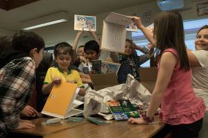 John Del Prete’s fourth-grade class crowded around two cardboard boxes stacked on a small cluster of desks near…