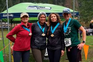A line of bibbed runners file past as we enter the Taneum Junction Campground parking lot in Cle…