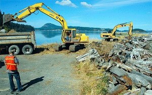 Restoration work on Ala Spit, a popular county park in North Whidbey, began in earnest Monday with loaders…