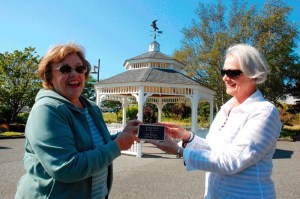 Oak Harbor Garden Club members Claire Reed and Judy Biddle hold up a placard that will be installed on the new gazebo at Hal Ramaley Park. The club is gifting the structure to the city and a dedication ceremony is planned for Aug. 24.