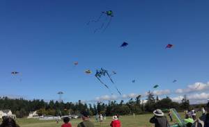 Kite fliers gather for the Whidbey Island Kite Festival in 2019. The Festival is one of many end-of-summer events happening on Whidbey Island. (Photo courtesy of Whidbey Island Kite Festival)