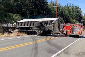 Driver loses control, tips his truck