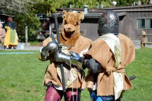 Monsters and the armored knights hunting them roamed the woods Saturday near Cornet Bay.