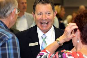 Mayor Bob Severns chats with luncheon attendees Thurday after delivering his first State of the City address since being elected.