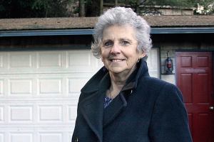 Arlene House of Coupeville stands before her garage that she also uses as a classroom as a life coach and tutor. Central Whidbey Hearts & Hammers has done multiple projects at her home, including replacing the garage door and roof. Photo by Ron Newberry/Whidbey News-Times