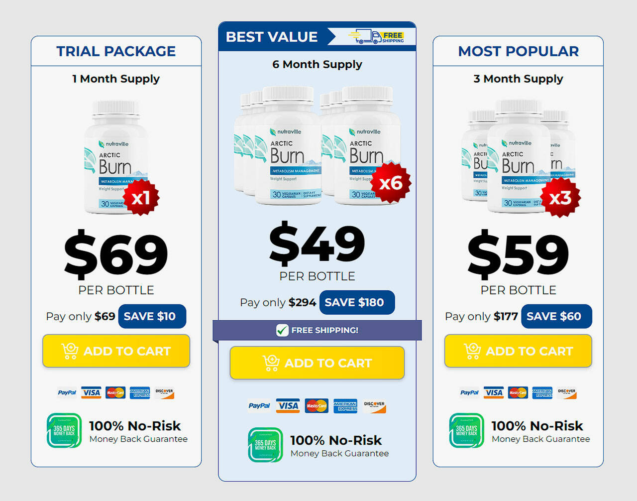 Arctic Burn is available on a special promotion, direct from the manufacturer. This supplement isn’t currently available in stores or on Amazon. Fortunately, by ordering directly from the official online store, you don’t have an intermediary adding a markup, giving you significant savings.