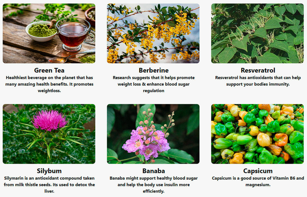 Primary Ingredients: Green tea, Silymarin, Berberine, Resveratrol, Banaba, Capsicum