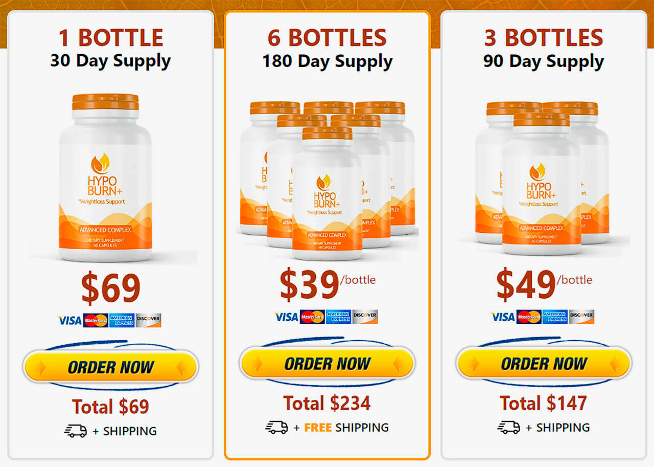 Hypoburn offers a transparent and accessible pricing structure that aligns with diverse preferences and commitment levels. A single bottle, a potent initiation into the transformative journey, is priced at $69. Recognizing the value of sustained commitment, Hypoburn extends cost-effective options – a package of 3 bottles for $147 or a comprehensive 6-bottle supply for $234. These pricing tiers cater to individual preferences, allowing users to choose the duration that best fits their wellness goals.