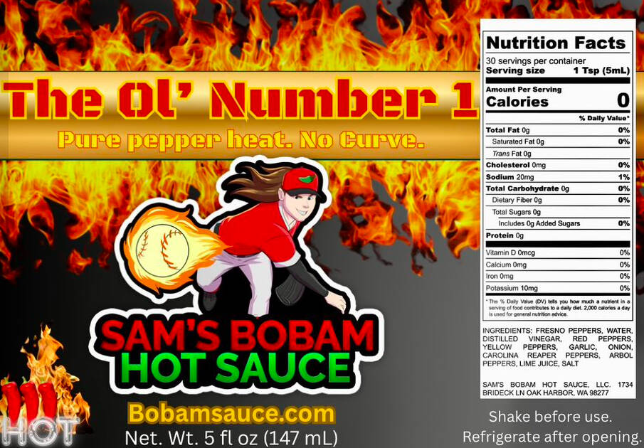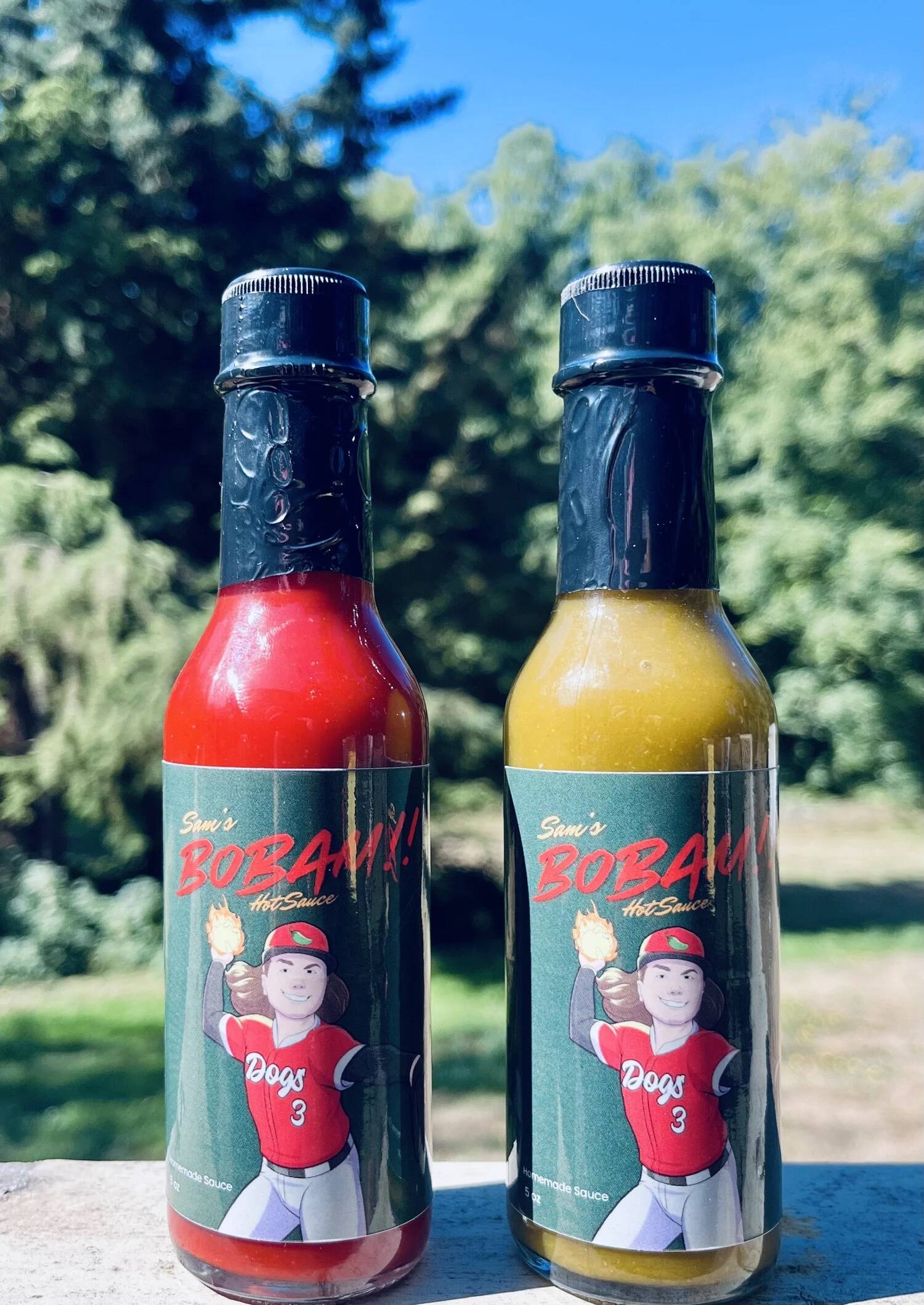“At Sam’s BoBam Hot Sauce, we believe in giving back. One dollar of every bottle sold helps sponsor local youth baseball teams across the Pacific Northwest, providing uniforms, equipment and opportunities for young players to shine,” his website states.