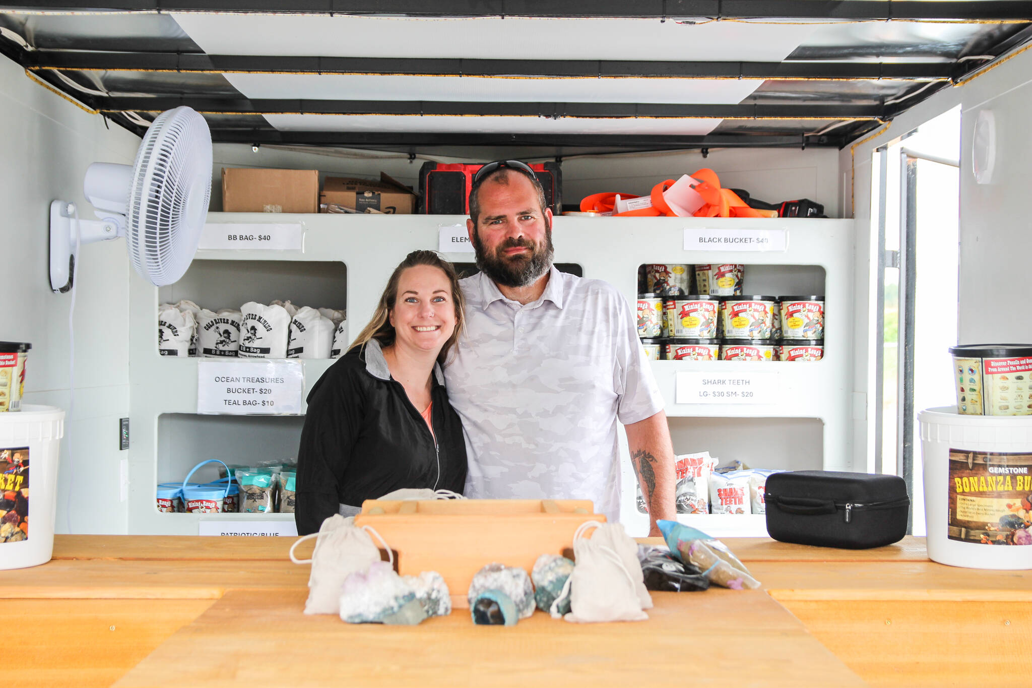 Three weeks ago, wife and husband duo Kim and Chuck Boyer opened Whidbey Gemstone Finders, a traveling “rough mining” business that brings the excitement of discovery in a safe and family-friendly fashion to festivals, birthday parties and other events.