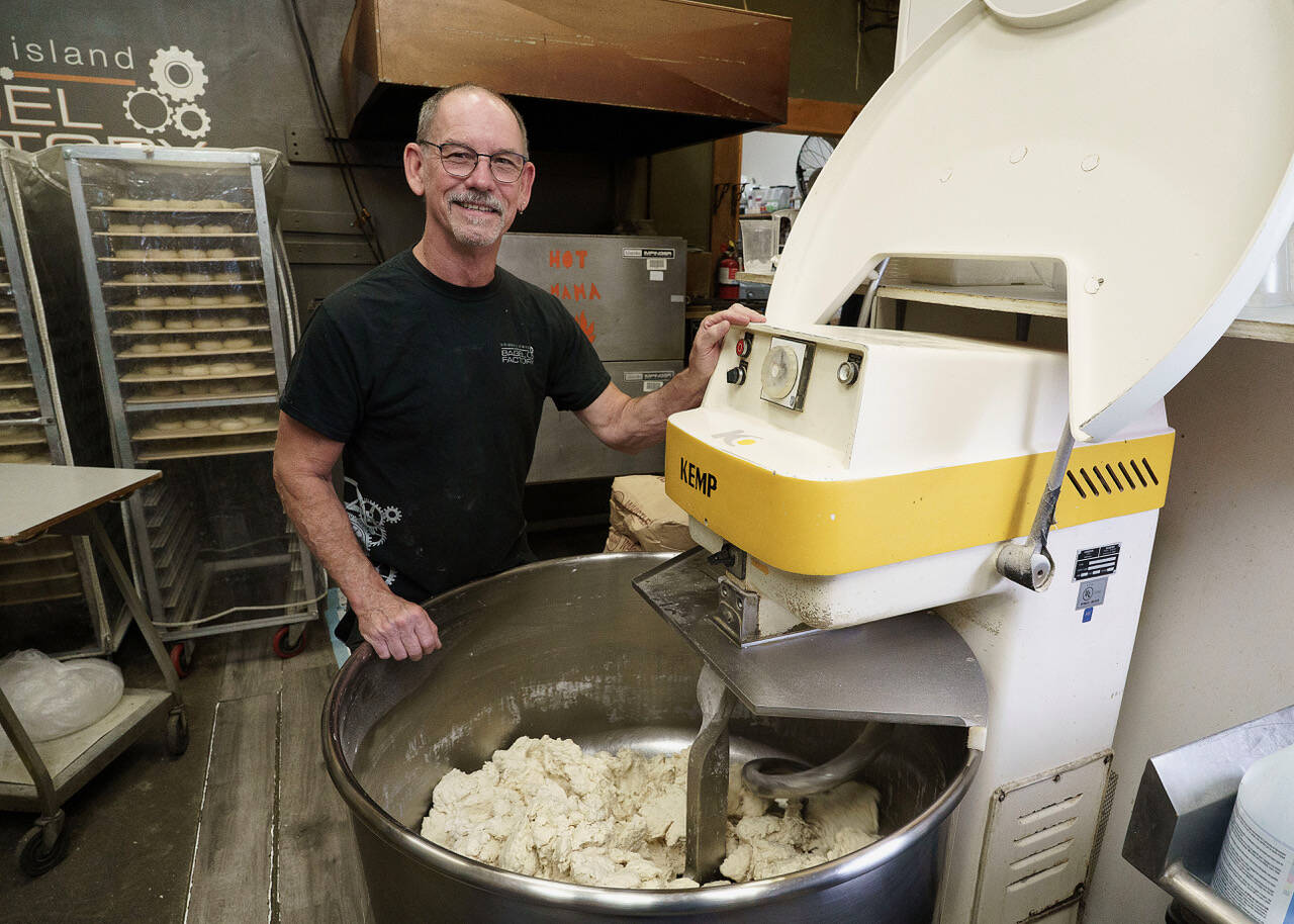 John Auburn, owner of the Whidbey Island Bagel Factory, is selling all three of his restaurants to his employees. His successor for the South Whidbey location couldn’t have a more perfect name – Clinton Hatton, who has spent the past two years as the mixer in the Ken’s Korner shop.
