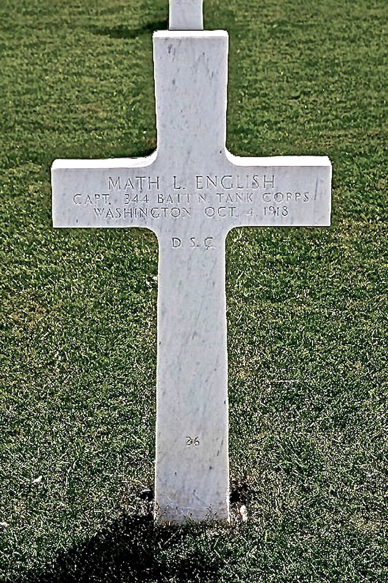 English received two Distinguished Service Crosses for his service in the Tank Corps, the second-highest honor for a member of the Army. Patton recommended English for his first honor for dismounting from a tank and supervising the cutting of a passage under heavy machine gun fire through three hostile trenches, according to Burdette-Dragoo’ book.