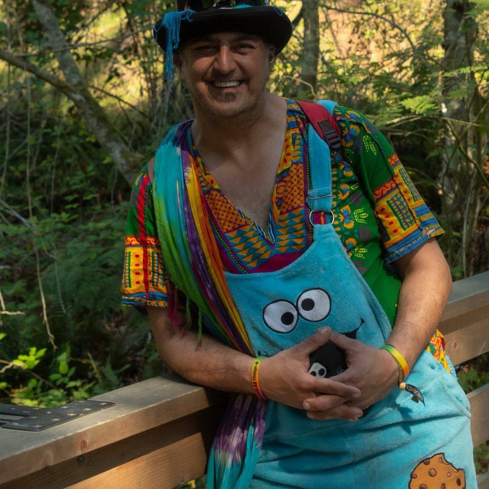 Juneau has lived on Whidbey since 2022, when he ended up on his sister’s couch after doing a cross-country tour of renaissance fairs. About a year ago, he started his own business, Whidbey Massage Therapy, working out of Dr. Eli Bentabou’s Chiropractic & Wellness Clinic in Freeland. Clients know him as a colorfully dressed character offering “Love” stickers and posters.