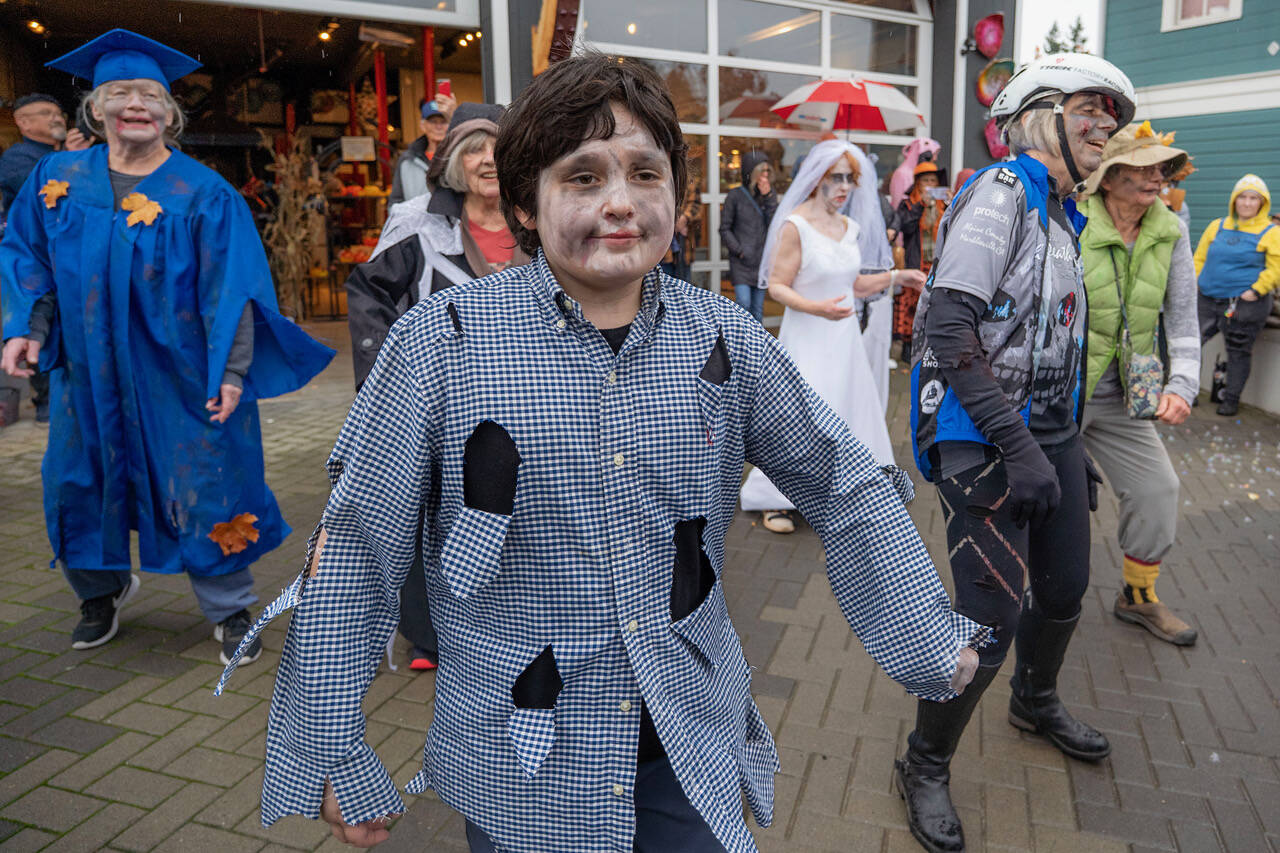 A horde of zombies gathered in Langley on Halloween for an annual “Thriller” flash mob. Zombie brides, graduates, athletes and more danced to the iconic Michael Jackson song. Meanwhile, kids and adults young at heart trick-or-treated around the city businesses during the Langley Spooktacular event.