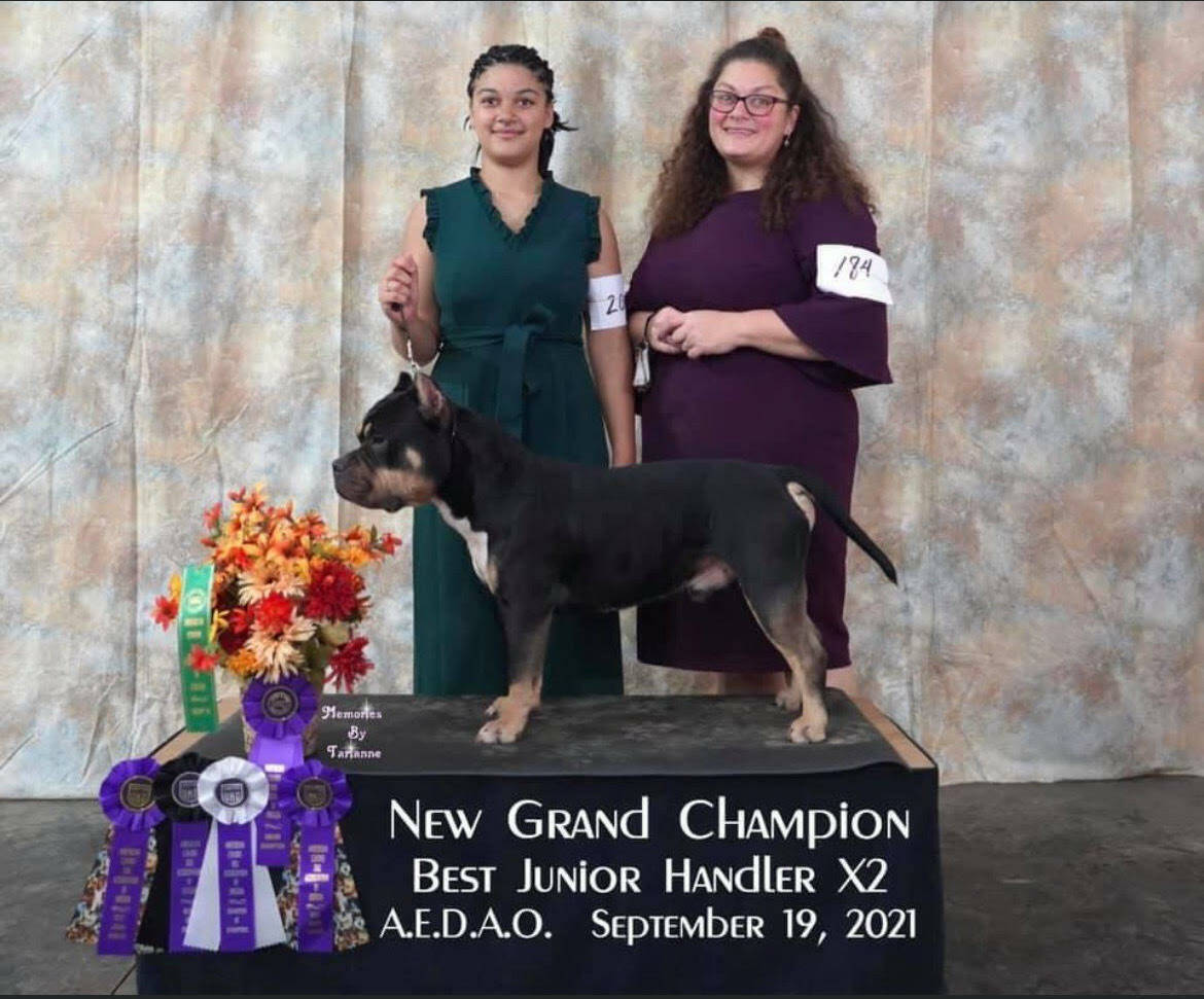 Handlers have to teach their dogs to run next to them at a trot, show their bite and stand still for the judge. Handlers also have to answer a multitude of questions about the breed and be familiar with its physical and personality characteristics. Love mainly shows an American bully named Kilo.