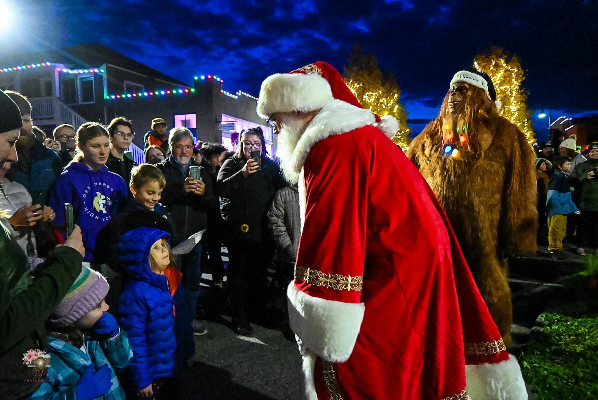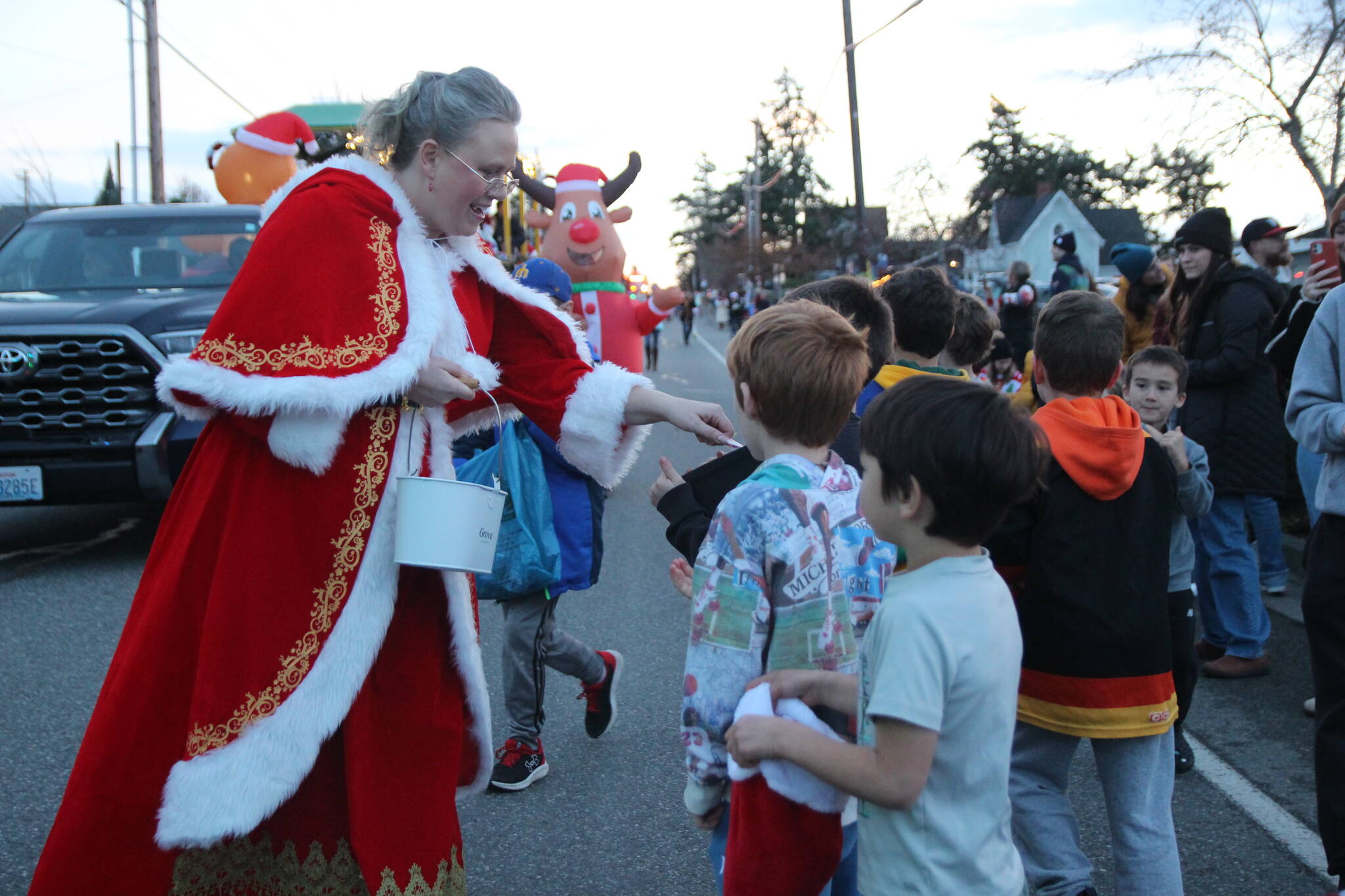 Lady Klinkerbell Krampus, Whidbey Island’s very old Krampus, walked along with Saint Nick, a long-legged elf and many other creative characters during the Holly Jolly Parade in Langley Saturday. While Lady Klinkerbell Krampus may look scary, she’s part of a Northern European tradition that celebrates whimsy and the mischievous side of the holidays, according to the Whidbey Island Fair website. The Langley parade was one of several community events held on Saturday to welcome the Christmas season.