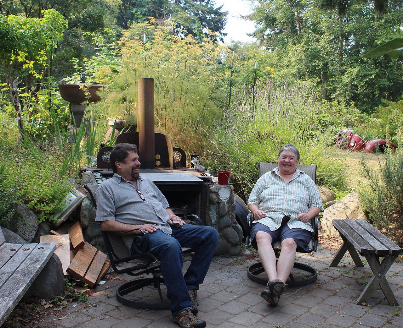 “We’ve had good conversations with people on the tour,” said Buffy Cribbs, who paints, sculpts and makes furniture at the South Whidbey home she shares with husband Bruce Morrow, a painter and printmaker. “We get 50 to 100 a people each day stopping by.”
