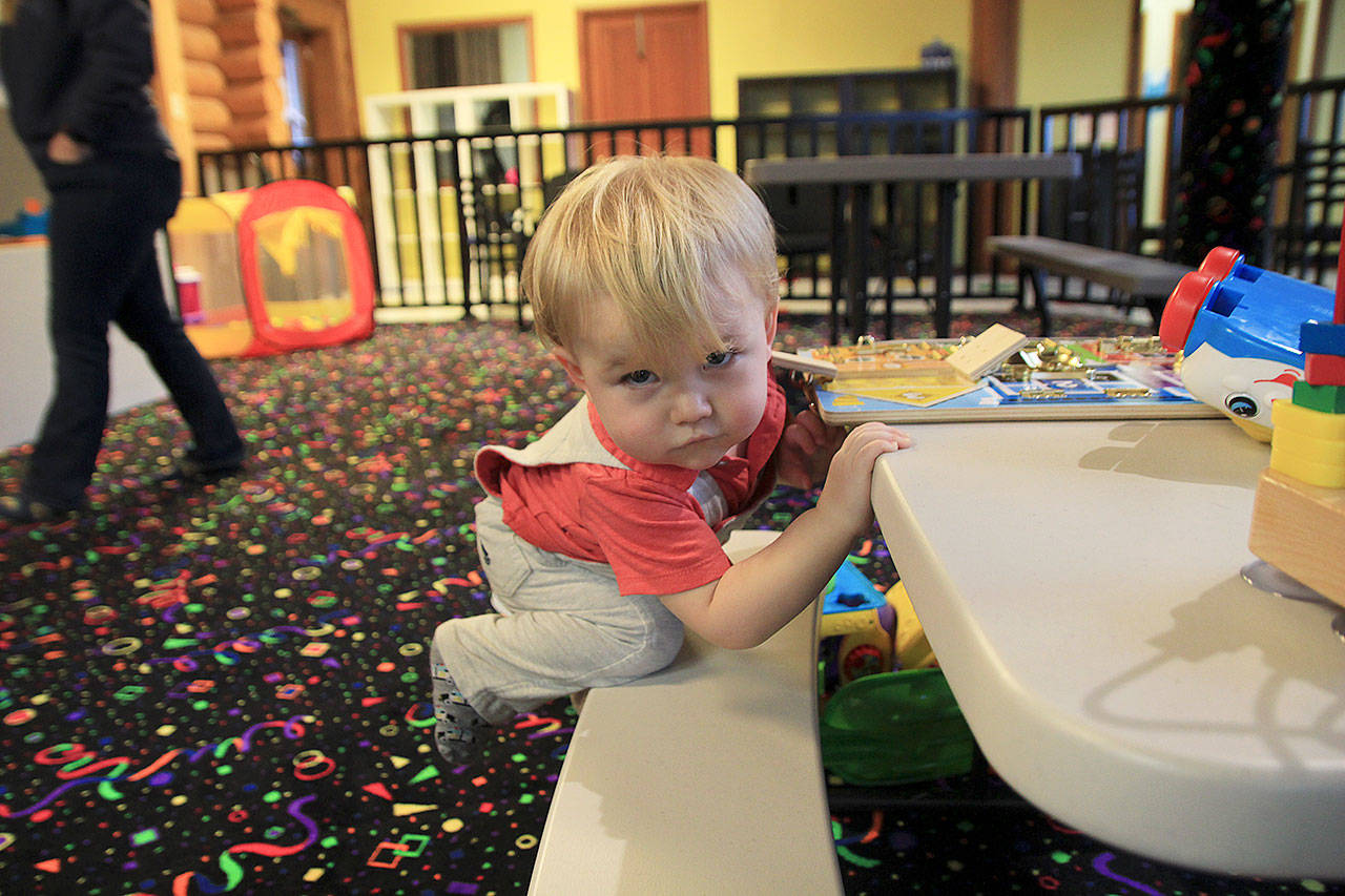 Last Thursday afternoon, Ethan Boswell busily hammered away, wearing a fluorescent orange construction vest. Nearby, Nathanial Mildener methodically filled his shopping cart. The boys are 4 years old and 15 months respectively and were going about their days in a miniature town, perfect for people of shorter stature.