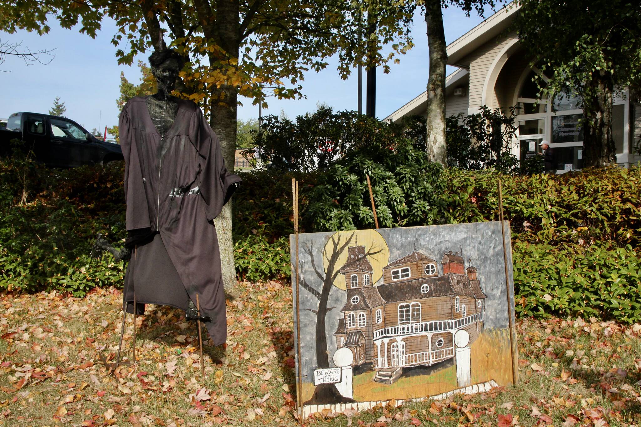 The United Methodist Church in Coupeville created scarecrow versions of Scooby, Daphne, Velma, Shaggy and Fred in front of a cutout of the Mystery Machine van.