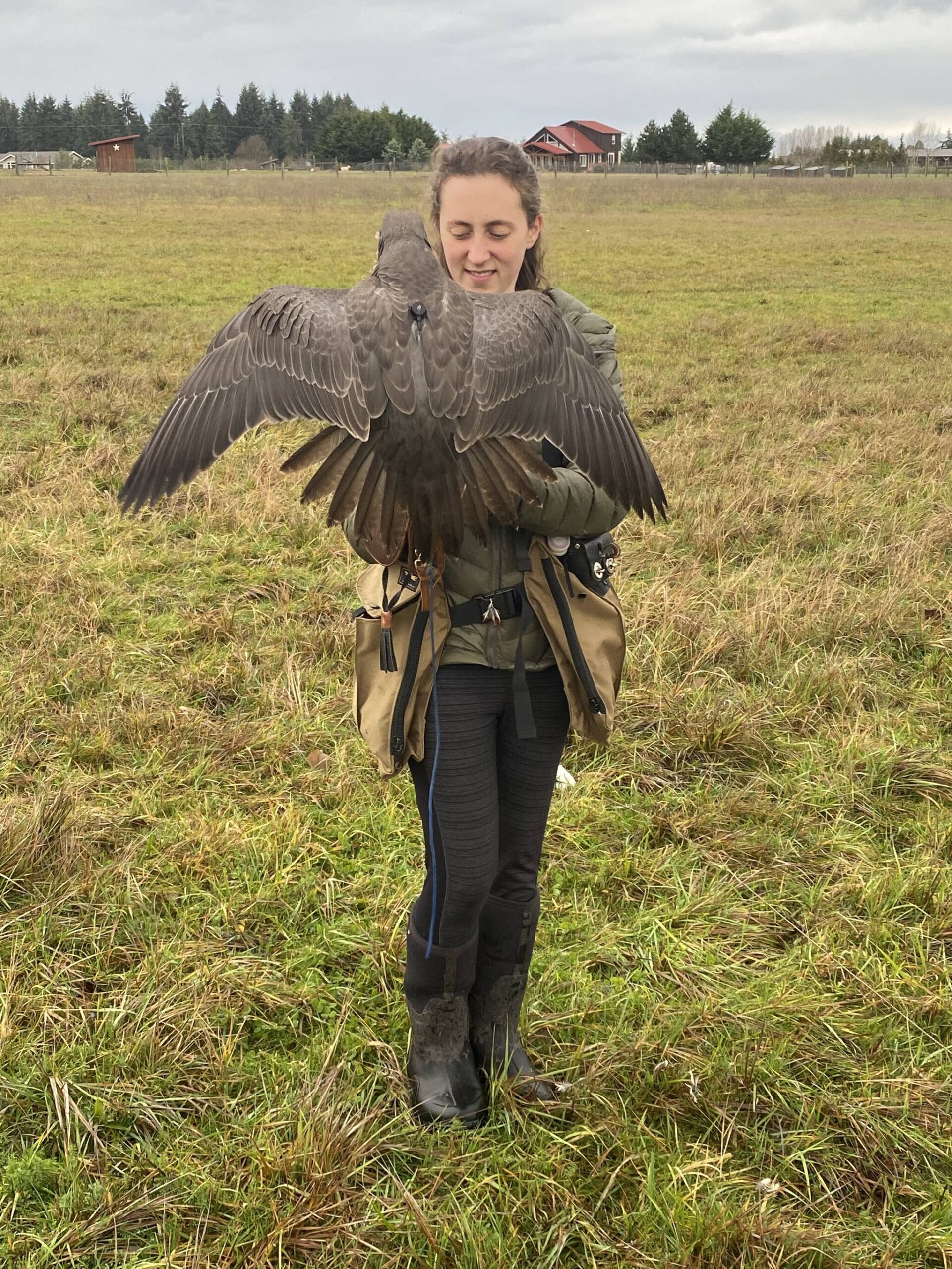 The bond between human and raptor isn’t overly affectionate, she said. In the wild, only 15% of some hawks make it past a year old because they die of starvation. The bird sticks to the human as a reliable food source.