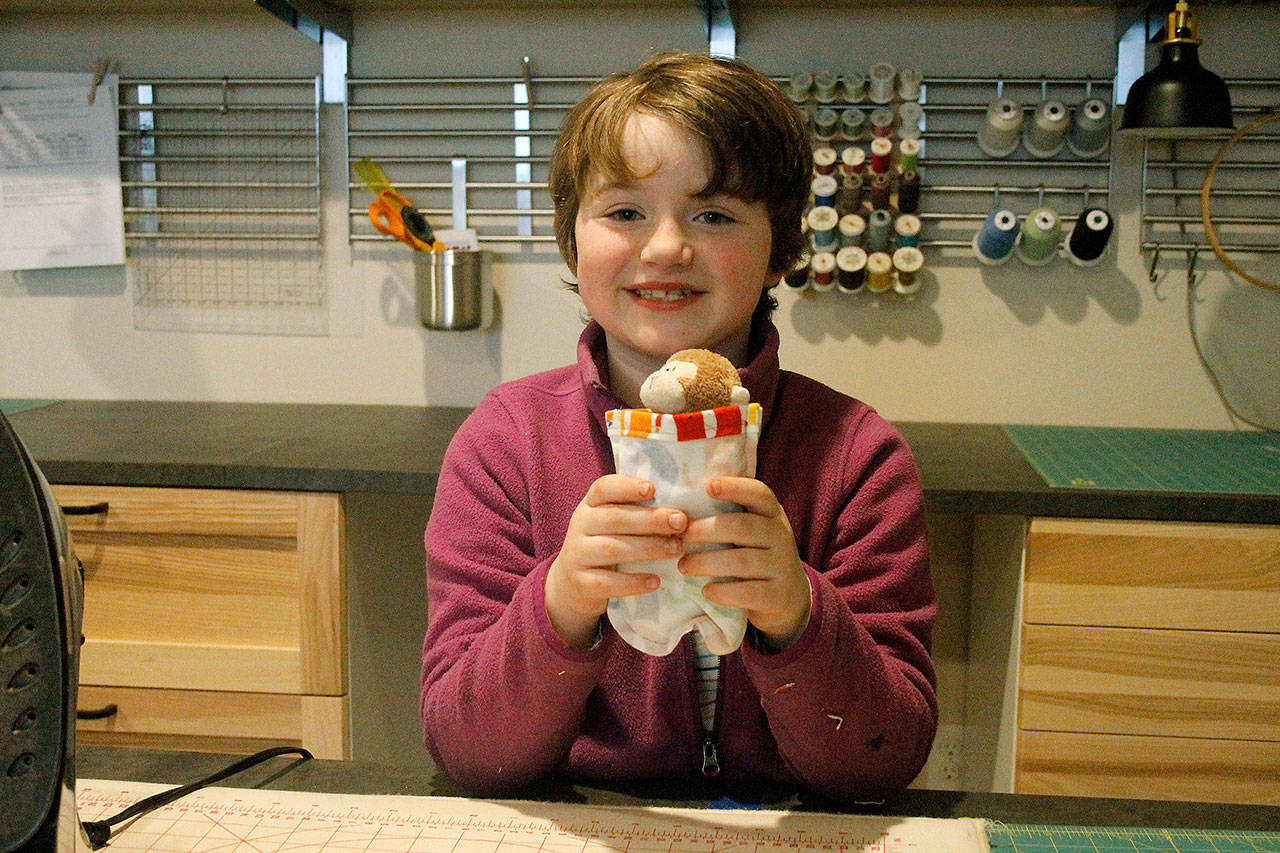 Requirements for the materials are also posted. Fabric and thread must be from natural fibers, such as cotton, wool or bamboo. Pouches are typically sewn inside-out, so the softest part of the fabric touches the baby animal.