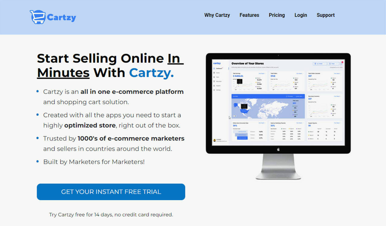 Cartzy works as a tool to allow you to build an online business from scratch without technical knowledge. It offers a platform that you can use to start up a company that is highly customizable and easy to use.