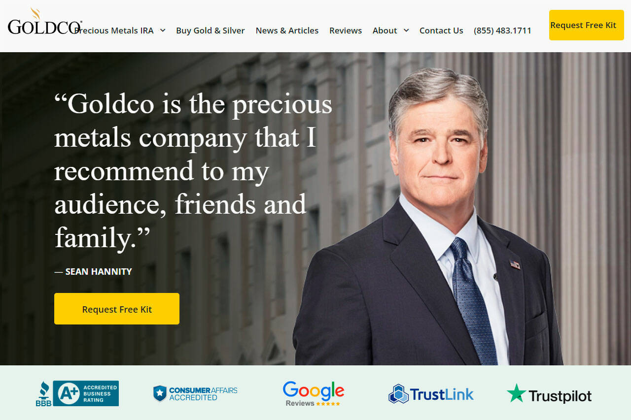 Founded in 2006 and with thousands of excellent reviews, GoldCo may be exactly what you need to secure your future as you grow into retirement. The company has endorsements from media personalities like Sean Hannity. It also has been rated as a AAA company by the Business Consumer Alliance and A+ company by Better Business Bureau.