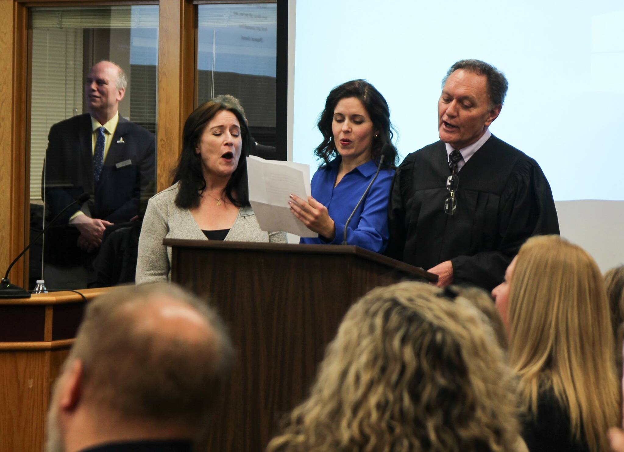 A large crowd filled the Council Chambers at the city hall to support Oak Harbor’s new and old leaders on Tuesday, Jan. 2.