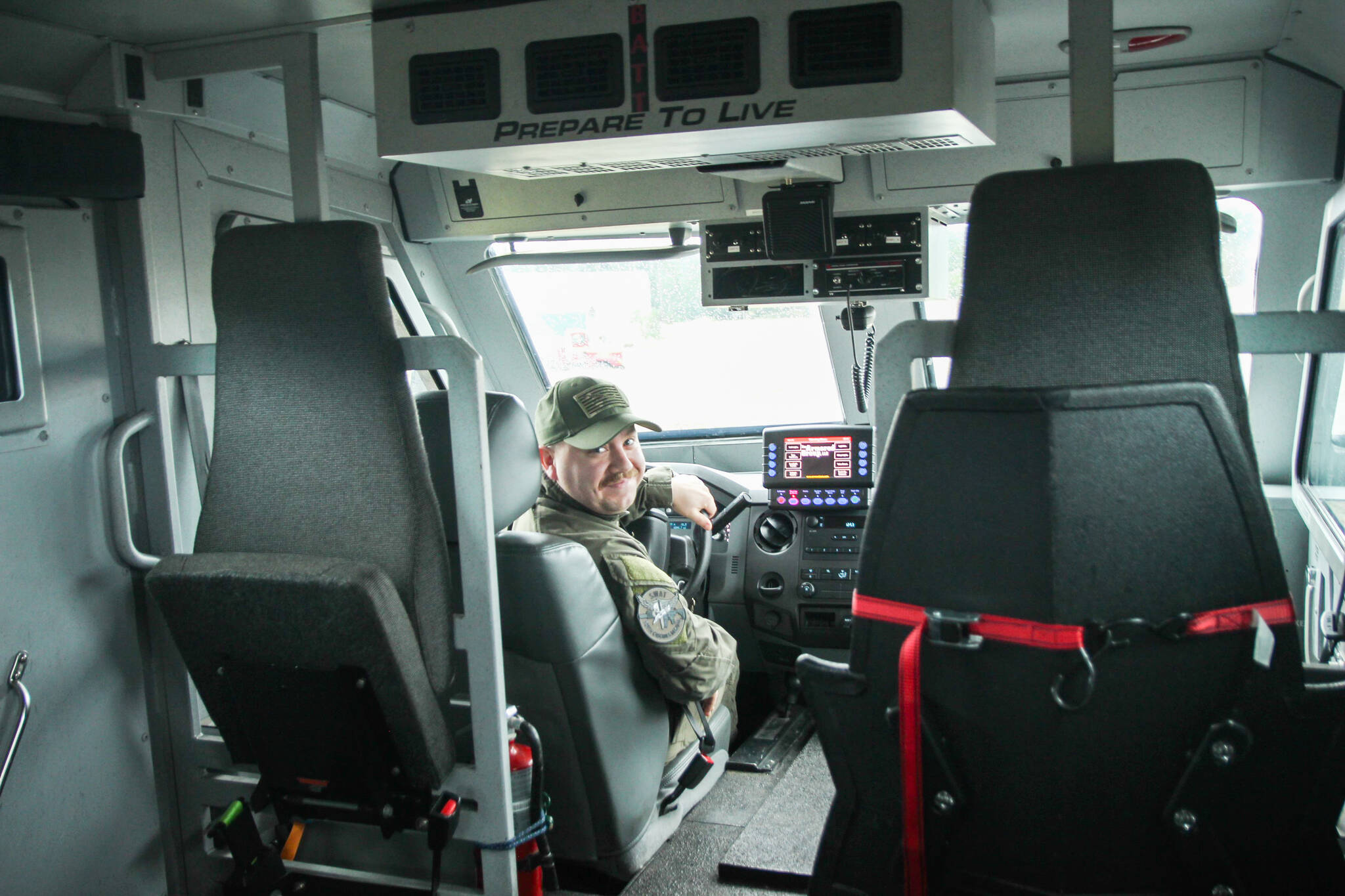 Slowik and other members of the department were obviously pleased with the amount of thought that went into building the vehicle, including the many gun slits, a turret with a protective hatch, a maneuverable ram, flood lights and even cup holders. It has a lot of space inside to evacuate people from dangerous situations.