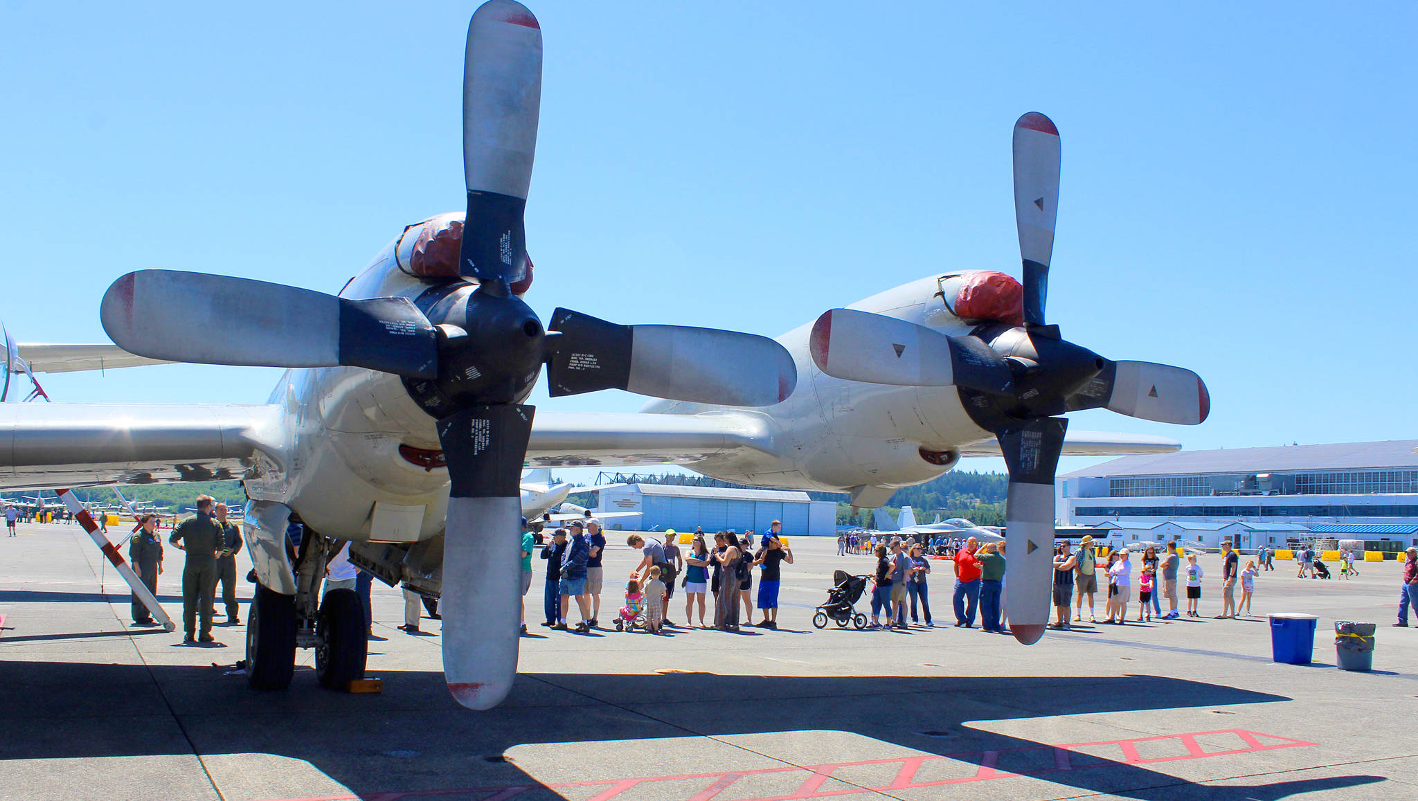 The past and future converged Saturday at Naval Air Station Whidbey Island as some 2,000 people came out during an open house to view vintage aircraft and tour the inside of the military’s newest high-tech flying machine.