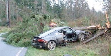 Olsen crashed his 2008 Audi R8 — a high-performance sports car — into a tree, sheering it in half, on Goss Lake Road in March of 2008. Blain suffered a broken pelvis in the crash, according to court documents.