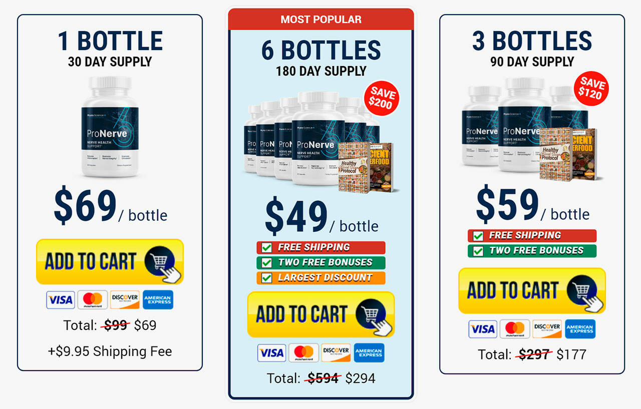 A: Users can only place an order through the official website. All three packages are still available, and consumers must select the one that best suits their needs. To reach the customer service team, email support@pronerve6today.com or call 1-732-917-7670.