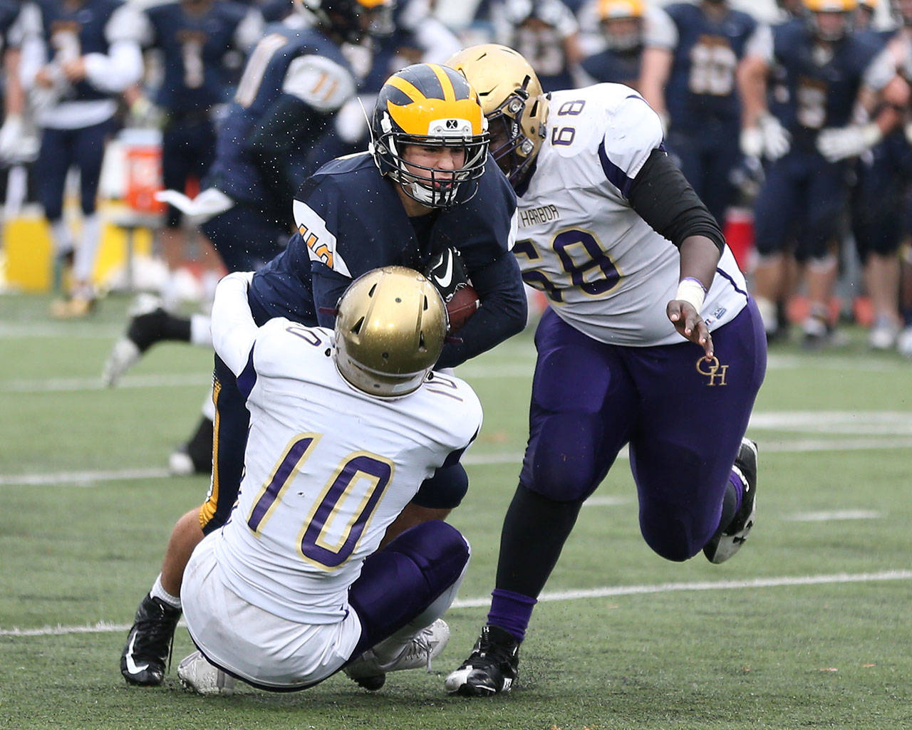 Hollins-Passmore was Oak Harbor’s leading rusher wth 42 yards on eight carries. Mac Nuanez, who was averaging more than 100 yards per game, was held to 29 yards on 11 runs. Aaron Martinez’s 18-yard run was the Wildcats’ biggest play; he had one more carry for five yards.