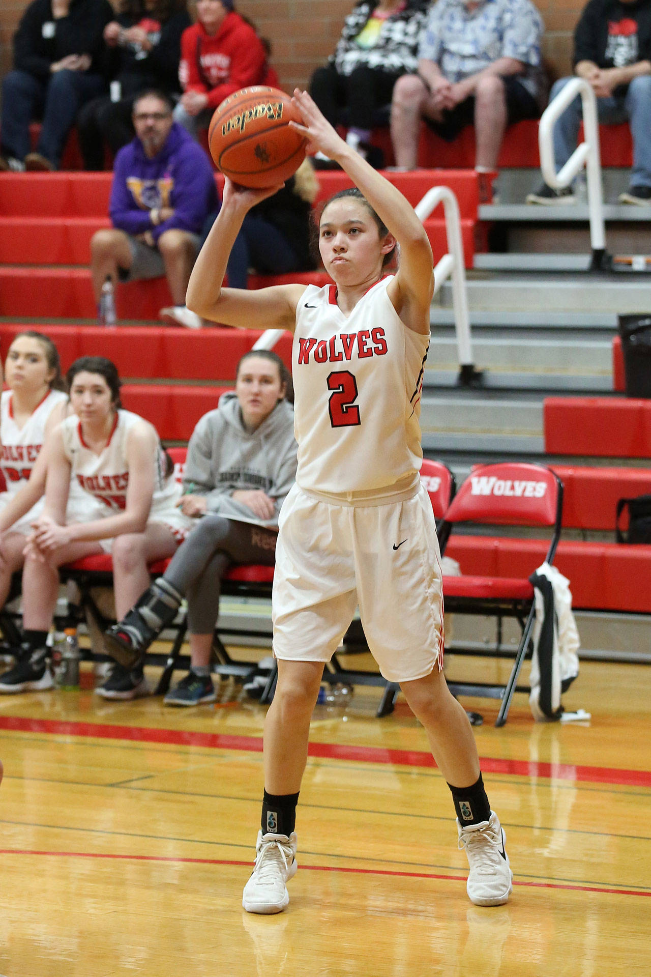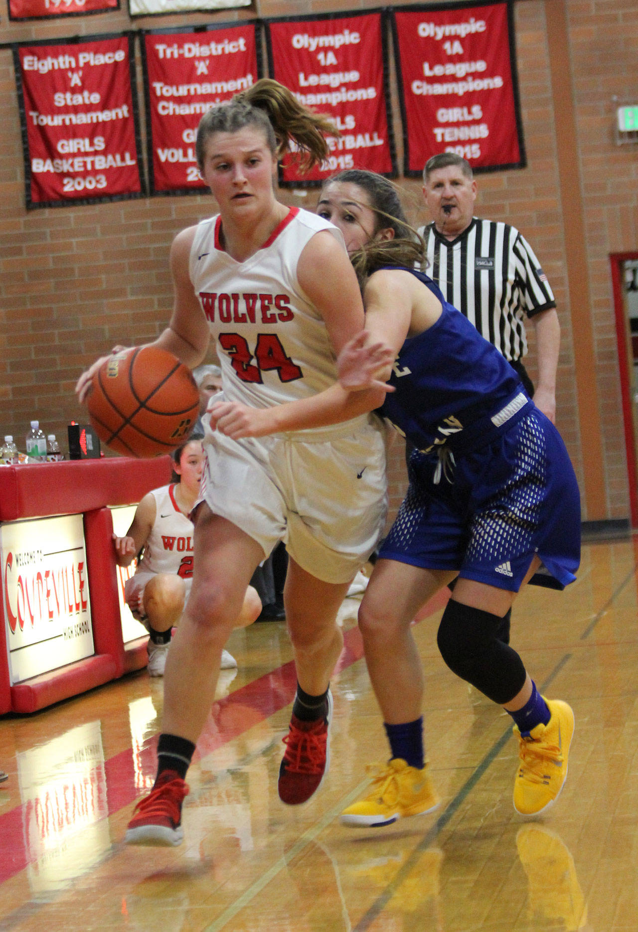 The miscues also limited Coupeville’s scoring opportunities, and the Wolves didn’t get on the board until 23 seconds remained in the first period. Chelsea Prescott’s bucket made it 12-2 at the quarter break, and the second period wasn’t much better for Coupeville.