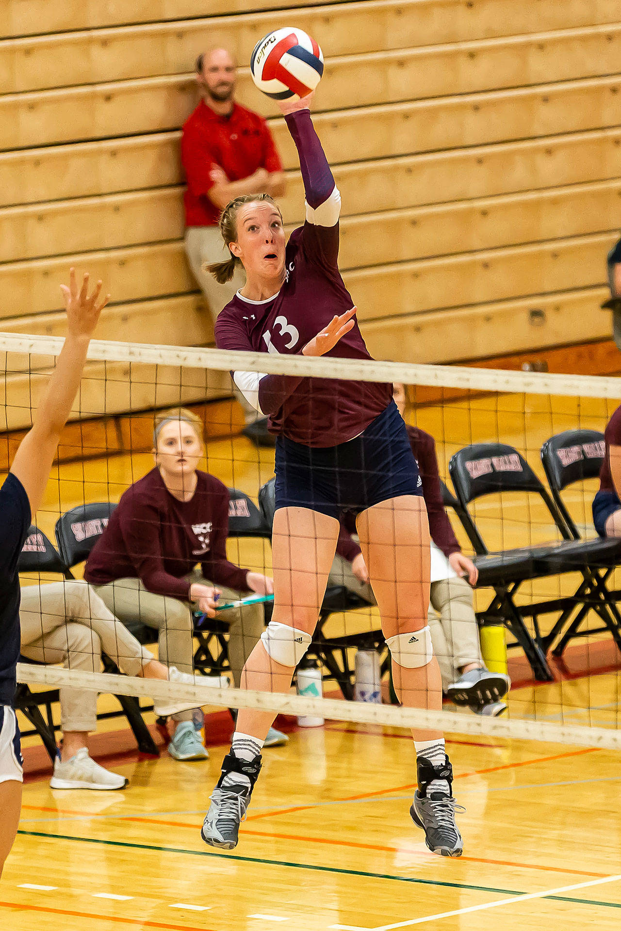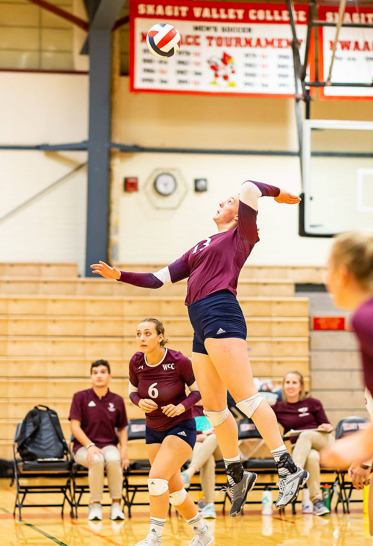 Two former Oak Harbor High School volleyball players, Hailee Blau and Samantha Hines, now compete for Whatcom Community College. Photographer John Fisken stopped by Skagit Valley College Wednesday, Sept. 26, in Mount Vernon to get some shots of the Wildcat alumni in action.