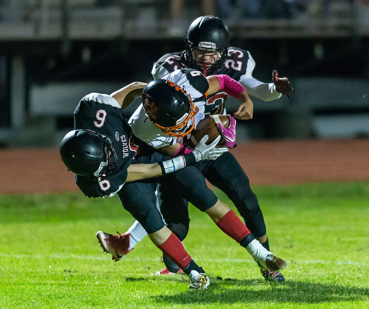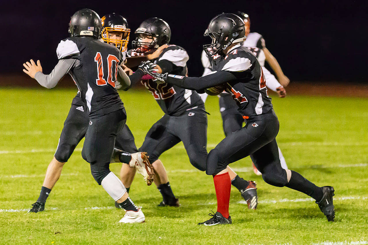After failing to get a first down in three first-quarter possessions, Coupeville moved the ball but couldn’t find the end zone. The Wolves were hurt by two interceptions and 10 penalties, six for personal fouls.