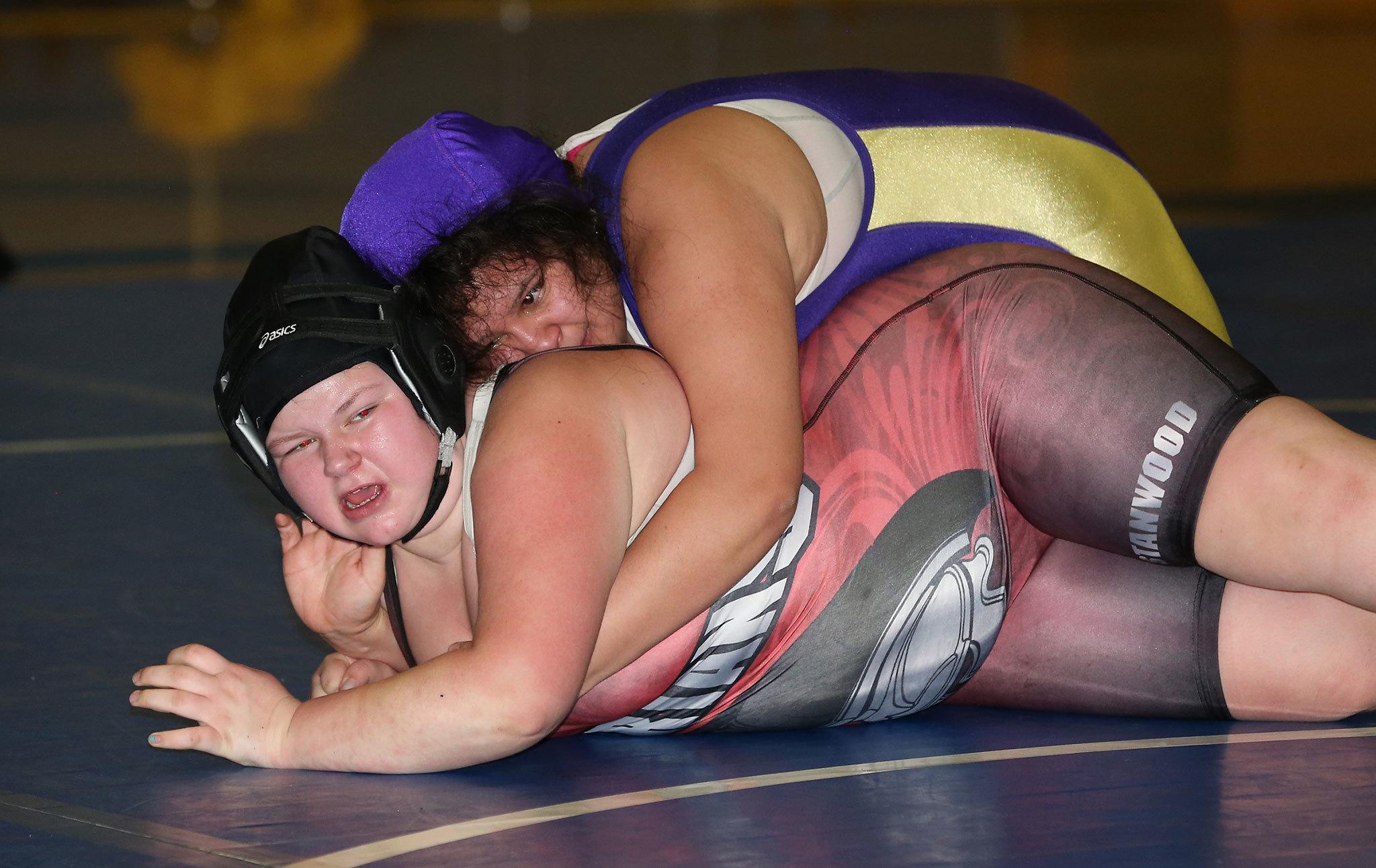 Oak Harbor High School wrestlers Meredith Bain and Caitlin Woodworth each placed first in the Sedro-Woolley Girls Tournament Saturday, Dec. 31.
