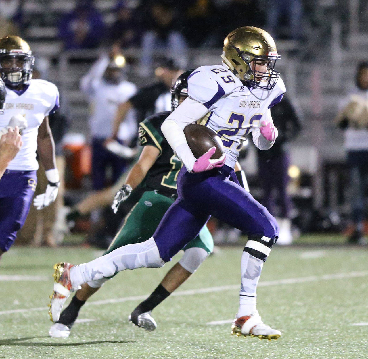 Hardin led the Oak Harbor offense with 184 rushing yards on only eight carries; Nuanez added 137 yards on 15 runs. Nine Wildcats had carries as Oak Harbor finished with 465 yards on 44 tries, averaging more than 10.5 yards per tote.